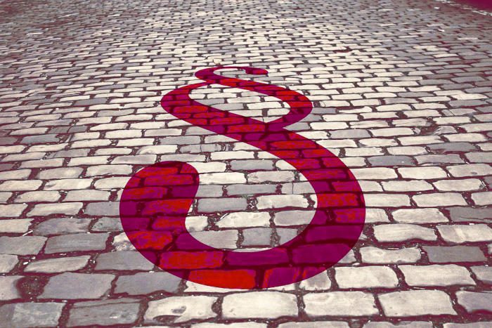 Ein Paragraphenzeichen über ein Kopfsteinpflaster gelegt.